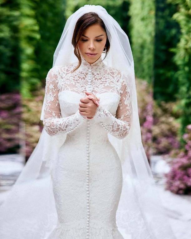 从背面看她穿上婚纱的着力,后背挺拔,凸凹有致,勾画出准新娘迷东谈主身姿,这么的劳伦桑切斯确乎惊艳,就连盘算推算师站在附近皆露馅欢然的笑颜。