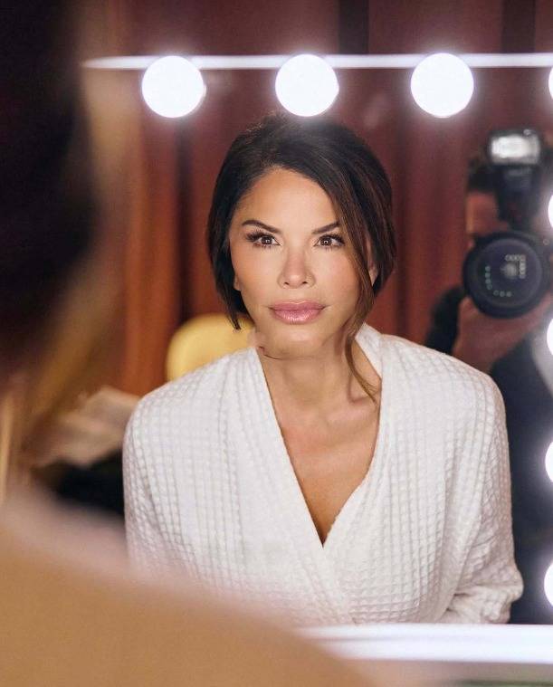 还有她和前任的子女也到现场恭维,可惜并莫得公开合影照,独一准新娘独自好意思;只见劳伦桑切斯一稔白色睡袍,对着镜头还轻轻撩起刘海,嘴巴微张的脸色太迷东谈主了。