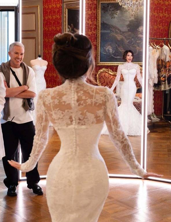 她共享婚典幕后照,不外子女并莫得现身,淌若莫得猜错的话,着对镜自赏的照并不是出自富豪老公贝佐斯之手,而是请的专科影相师给拍的,因为婚典前准新娘为了给准新郎惊喜,并莫得炫耀要穿什么模式的婚服。