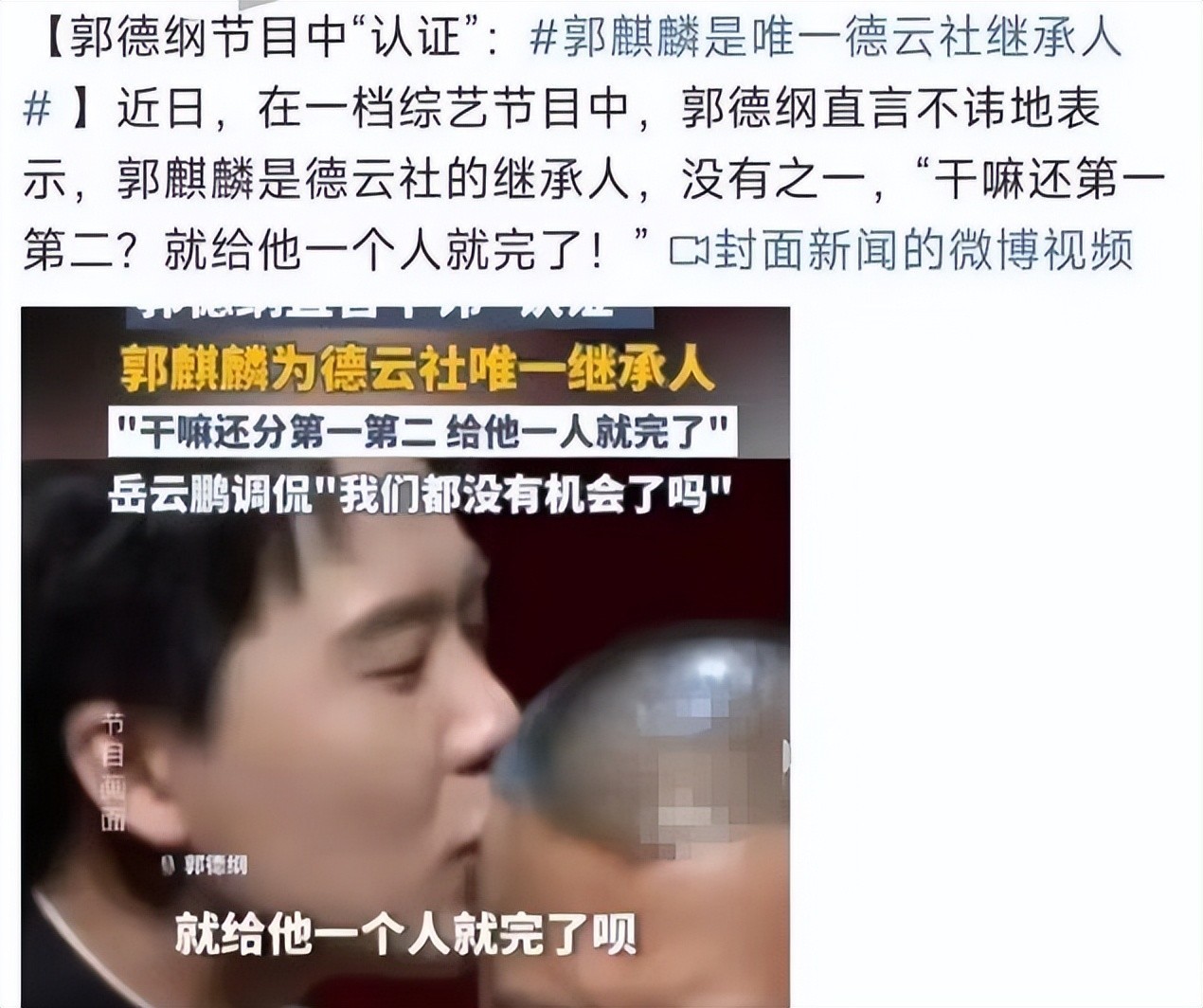 于谦这句看似大致的话,内容上在镜头前进一步闲逸了郭麒麟的承袭东说念主地位。