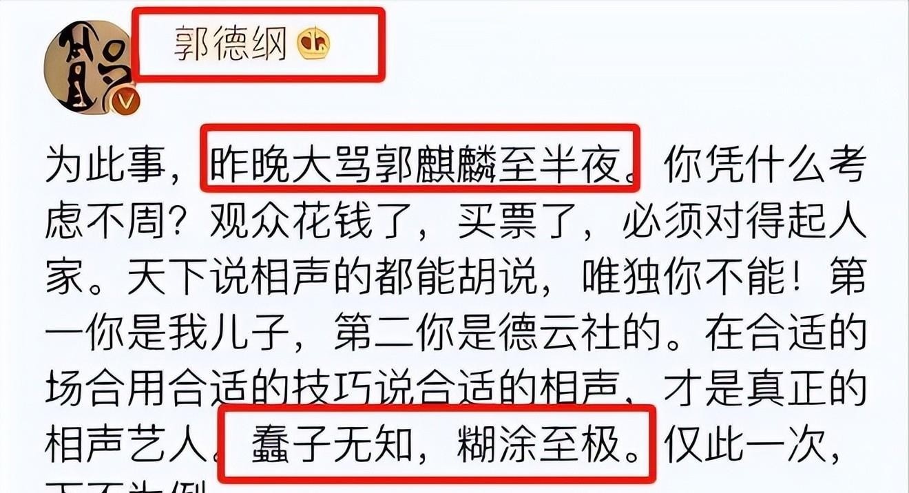 郭麒麟只有稍有过错,郭德纲就会辞世东说念主眼前严厉月旦,绝不见谅。