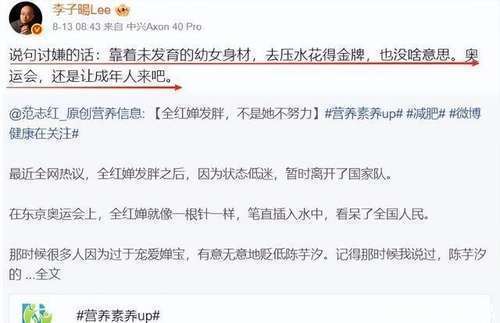 前段时辰,一个百万网红“李子暘 Lee”更是告成跳出来嘲讽她,说什么“靠着未发育的幼女形体,去压水花得金牌,也没啥兴趣兴趣。奥运会,如故让成年东谈主来吧。”这话说的,真实是赤裸裸的坏心。全红婵的金牌,是靠“幼女形体”得来的吗?她背后付出的勇猛,难谈皆被狗吃了?