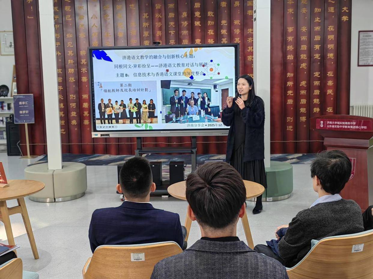 “碰撞·交融”是本次疏通的中枢。12月10日下昼,以“东谈主工智能期间语文教学的守正与革命”为主题的济港语文训导沙龙在天地藏书楼是非举行。五位香港名师区别就香港语文课程改进、信息期间与课堂整合、传统文化传承、学生才智培养及查察评价体系等专题进行了精彩分享。济南大学城实验高中的后生老师也展示了他们在革命写稿教学、学术课堂建造及新高考备考等方面的念念考与施行。此外,学员们还参与了学生专题谈话会,从多维度了解内地以及学校的训导生态,与学生伸开了是非的疏通商讨。