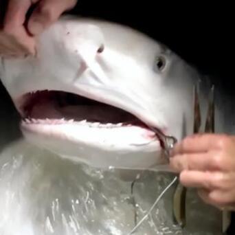那是四条体型稍小的幼鲨。令在场合有潜水员头皮发麻的是,这四条幼鲨的嘴边确切清一色地挂着毁掉的钓线和鱼钩!